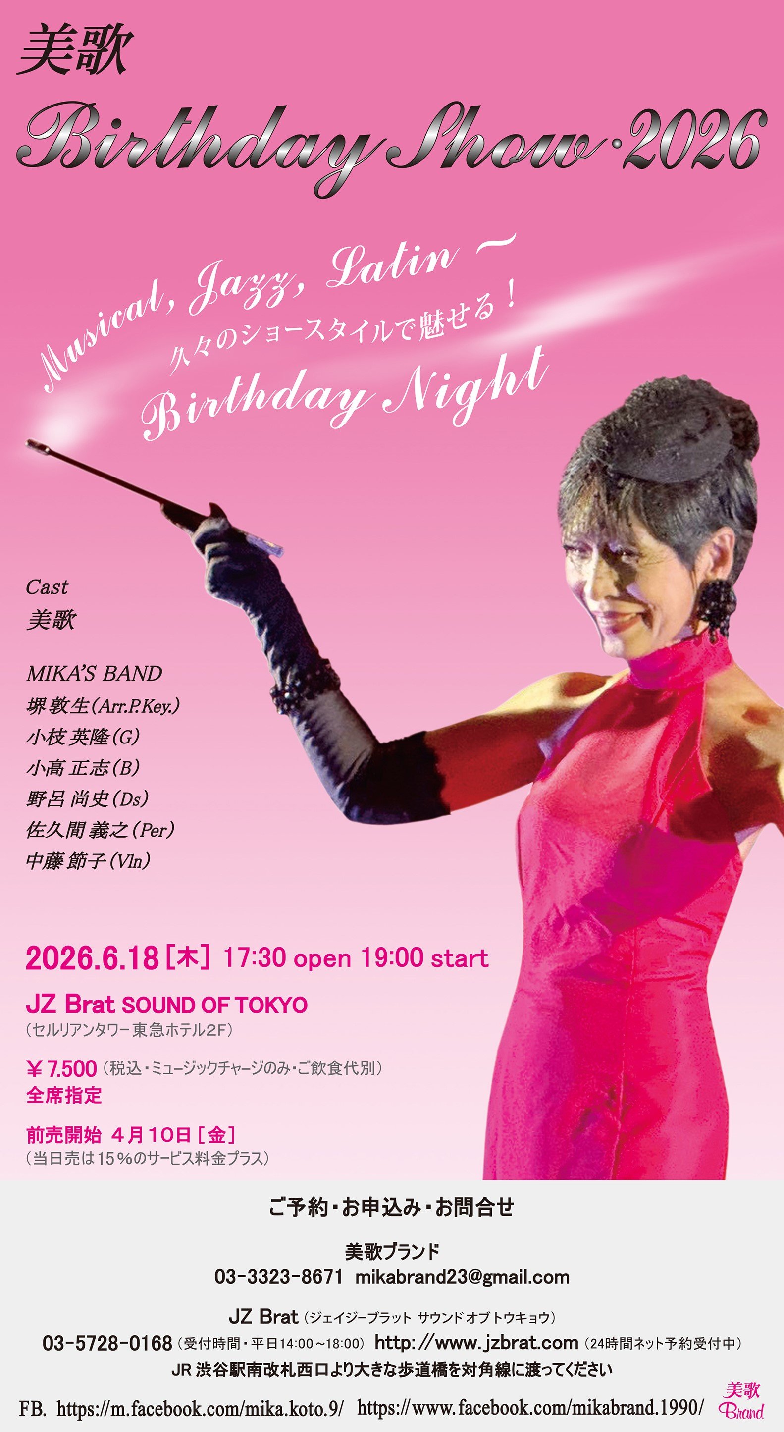 美歌(Vo) MIKA'S BAND: 堺敦生(Arr,Pf,Key) 小枝英隆(Gt) 小髙正志(Ba) 野呂尚史(Ds) 佐久間義之(Per) 中藤節子(Vln) |