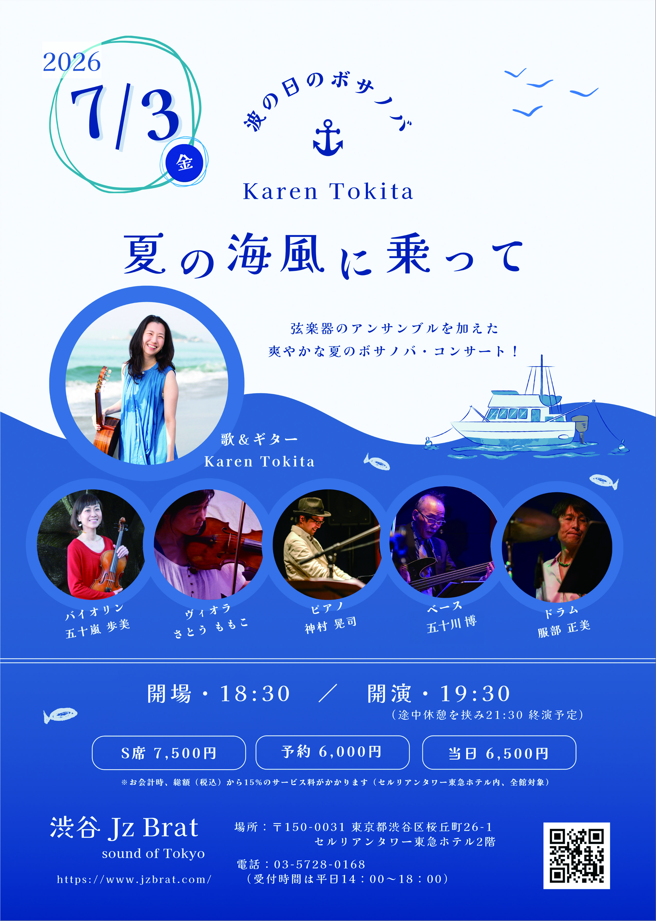 スタンダードなボサノヴァナンバーを、波間を滑るサーフィンのように滑らかな弦楽器でつつみ、お贈りいたします。